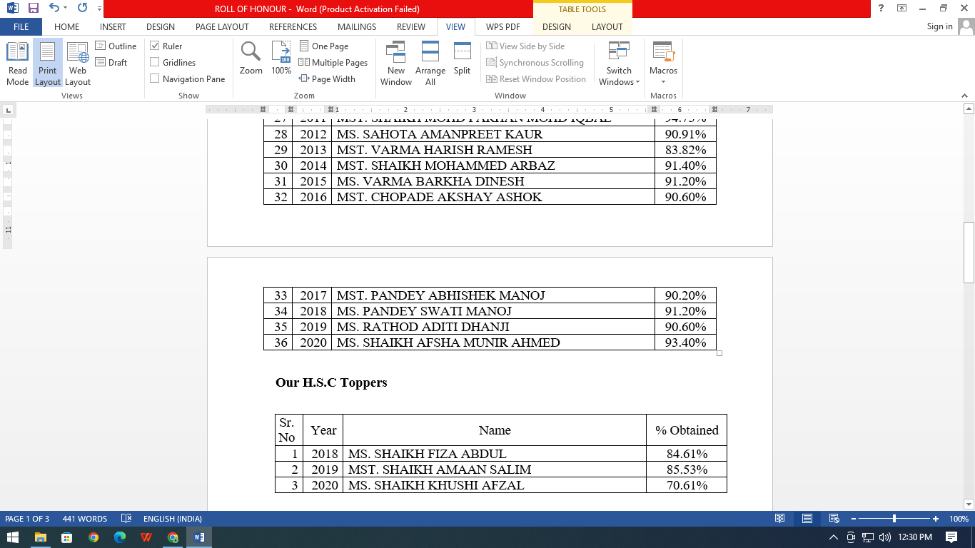 High School UDISE No. 27230300453